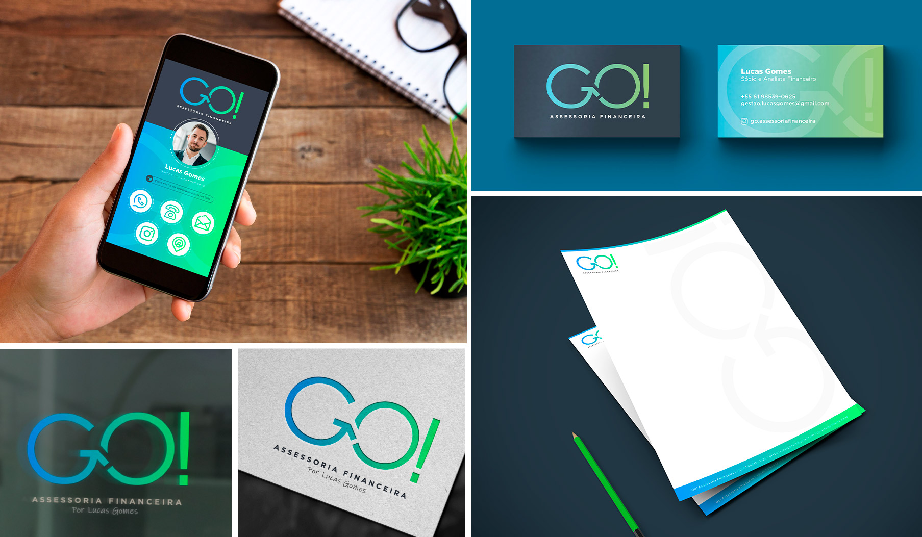 Criação da Marca e Identidade Visual completa para a Go Assessoria Financeira, localizado em Brasília, DF.